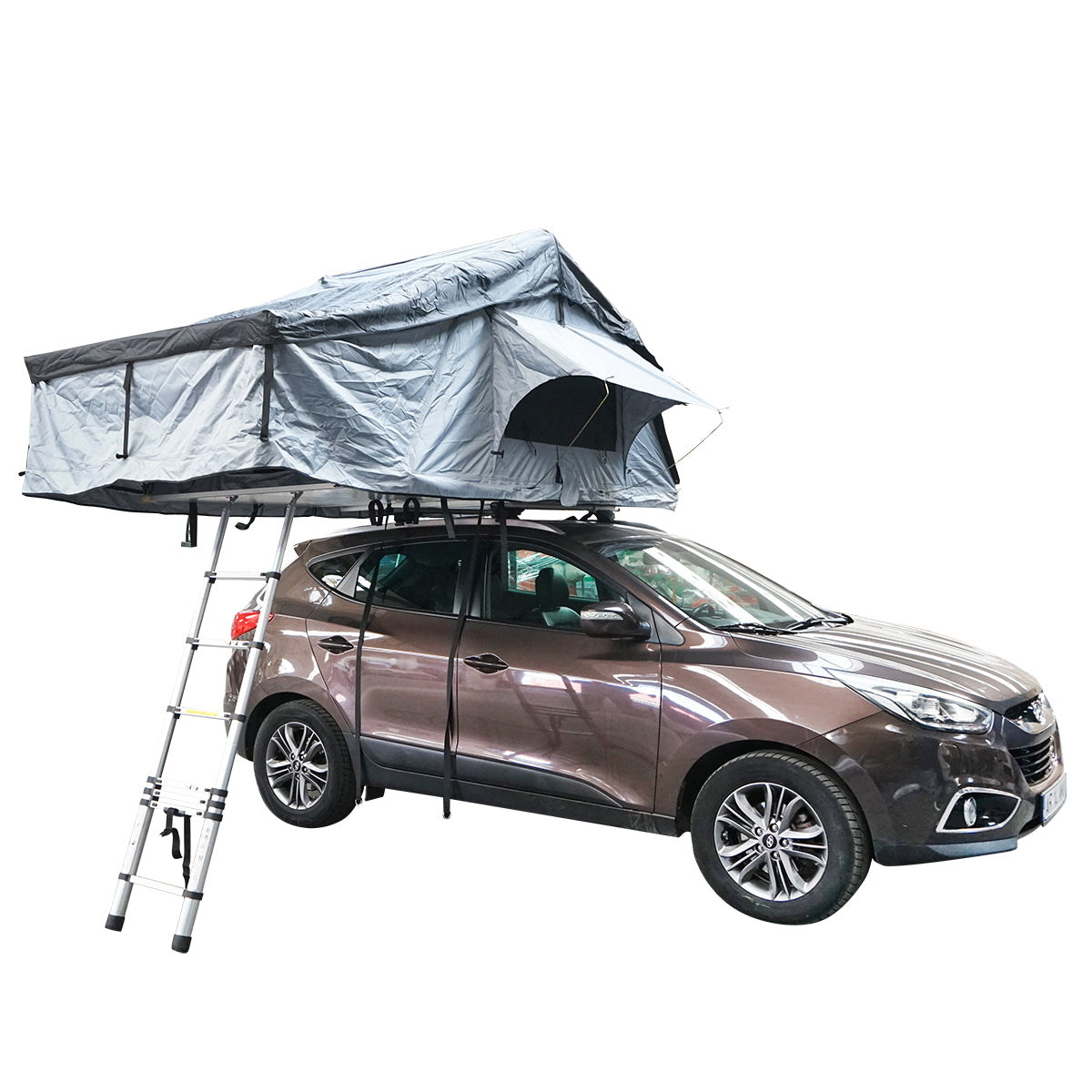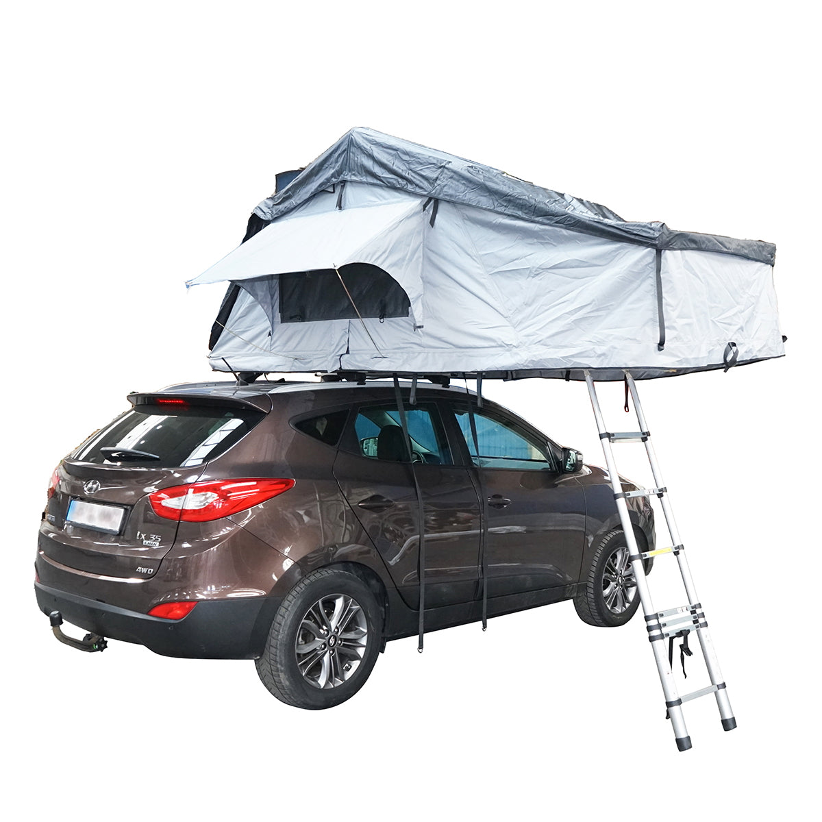 Waterproof car tent for 3 people, ceiling attachment with extension, platform, and ladder