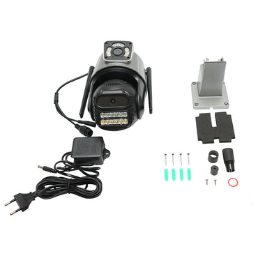 Materials:DurableContinuous registration:YesFood voltage:100 - 240V / DC 12VResolution:2404 x 2592 - 6MP (dual -sensor system)Color:Metal grayPTZ function:Pan-tilt-zoom motorizedConnection:2.4 GHz Wi-Fi and LANMicrophone and incorporated speaker:Bidirectional communicationObjective:3.6...