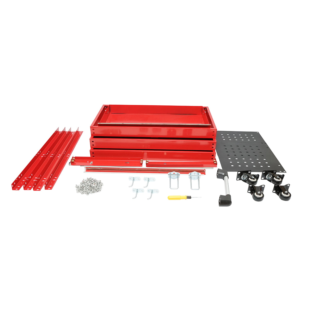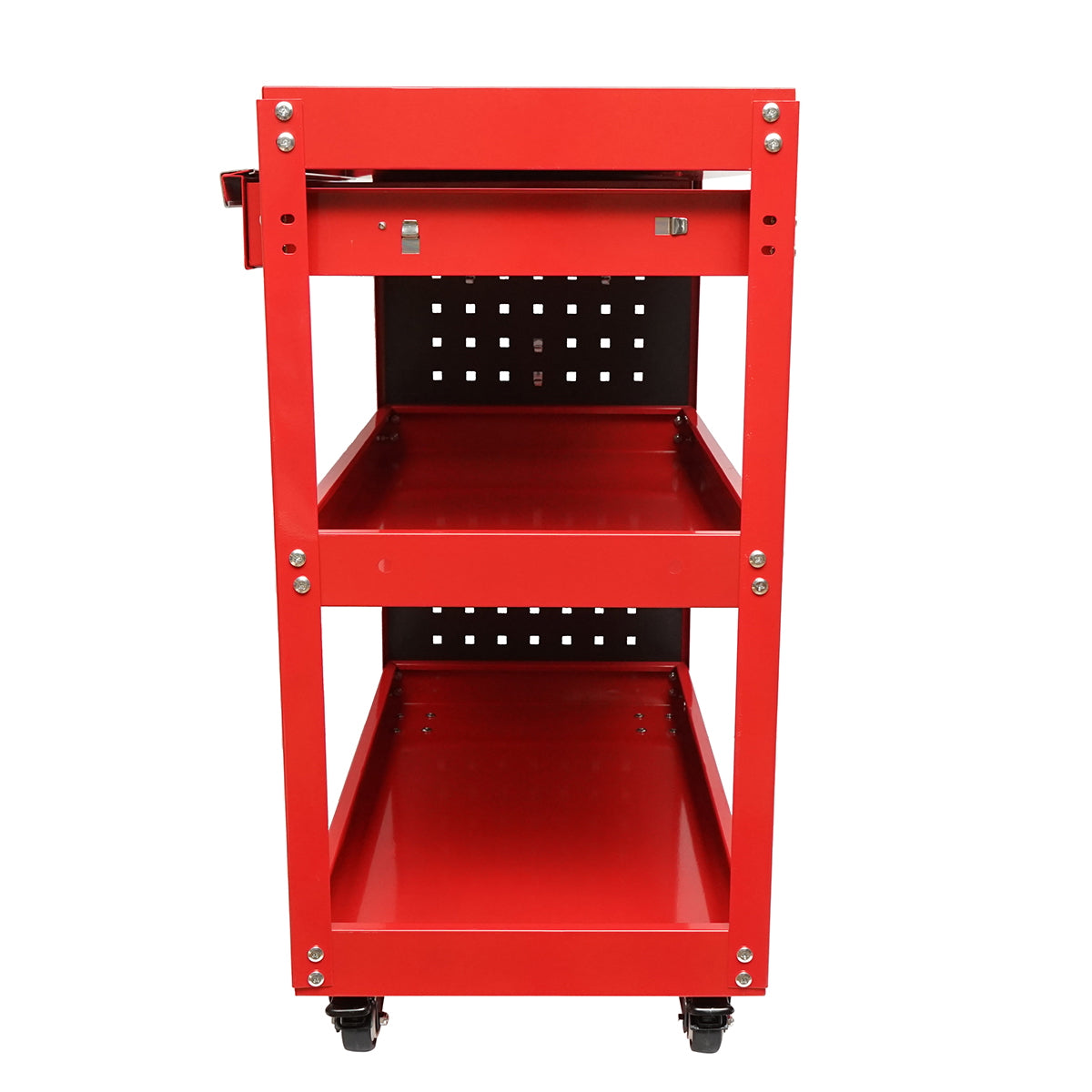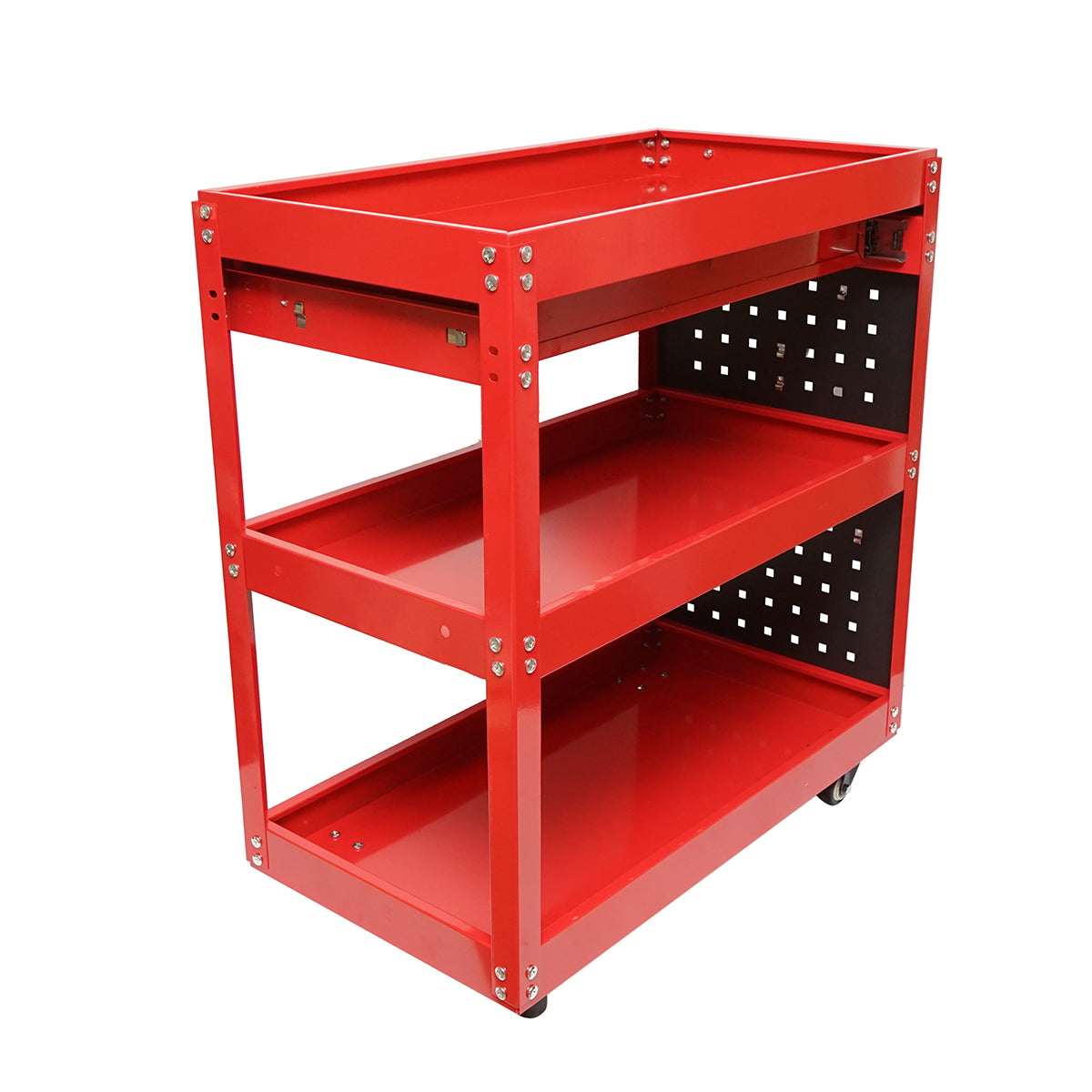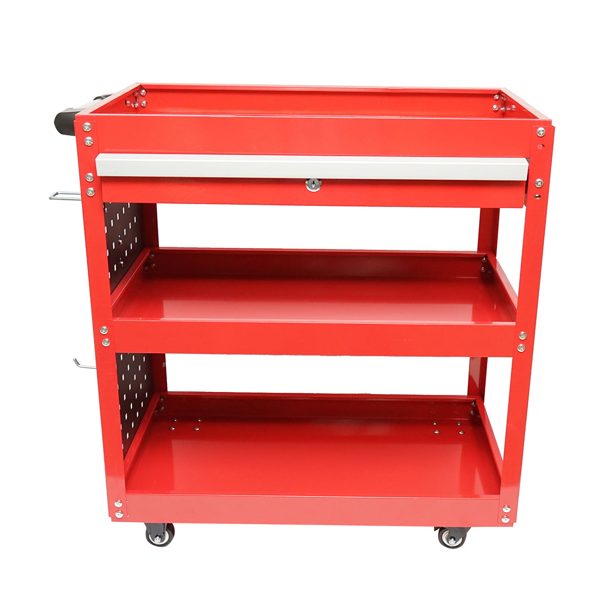 Metal trolley on wheels with 3 shelves, supports, and drawer for tools 660x360x730mm