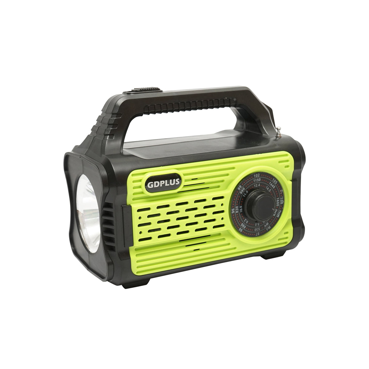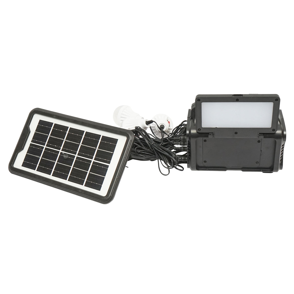 Portable LED lighting kit with 4 bulbs/projector, solar panel, FM radio, and 10000 mAh battery for fishing camping GD-8076