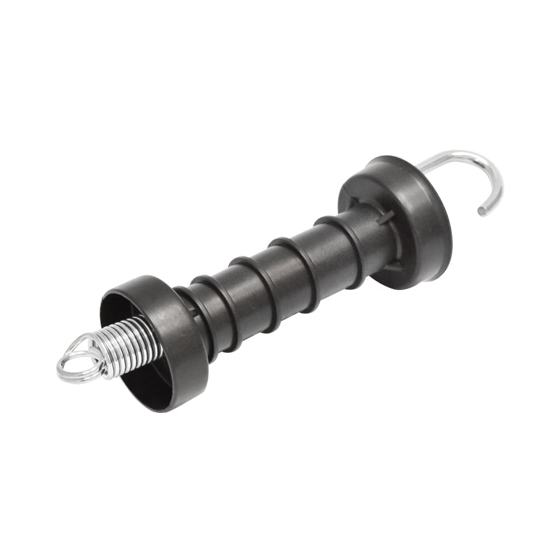 Black gate handle with hook and large arc electric fence Mezofarm