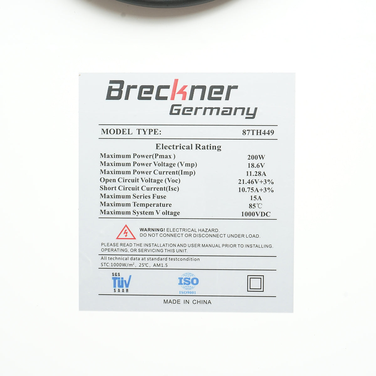 | Maximum power (PMAX) | 200 w |